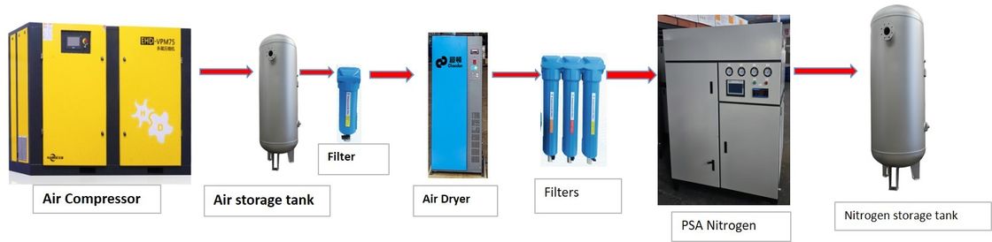 De grondstof voor de PSA stikstofgenerator is lucht, die overvloedig en gemakkelijk verkrijgbaar is.Het systeem is ontworpen om hoogzuivere stikstof te produceren met een zuiverheidsniveau tot 99.99%.